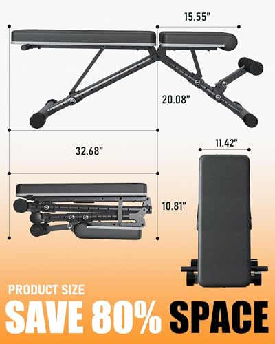 [Fold, move, store] The folding weight bench could be absolutely folded to occupy minimal area for storage. Include transport wheels so that you can transfer the exercise bench simply at your own home gymnasium.